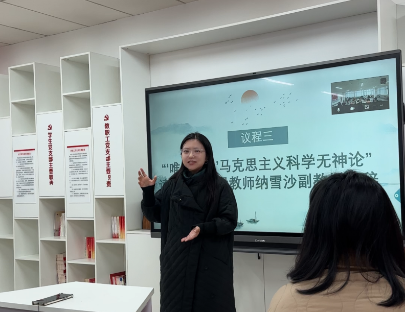 两个读书小组的指导教师分别就后续工作提出要求。纳雪沙副教授结合自身学术经历分享心得,强调研读要做到“读深、读透、读活”,通过联系现实激活文本价值,既要“抬头看世界”,更要“敢提问、敢思辨、多交流”,指出对疑点的钻研是形成独特阅读体验的关键,并期望“‘唯物求是’马克思主义科学无神论”读书小组围绕主题产出丰硕成果。李雪松老师针对“理育菁华”读书小组成长路径提出方法论指引,明确要以“为何读”锚定方向,在理论溯源中筑牢信仰根基;以“怎样读”锤炼方法,在知行合一中激活理论生命力;以“终身读”塑造品格,在深耕细悟中培育精神气象,要求小组秉持“真学真信真懂真用”初心,杜绝形式主义,成长为兼具思想深度、人文厚度与实践力度的时代新人。