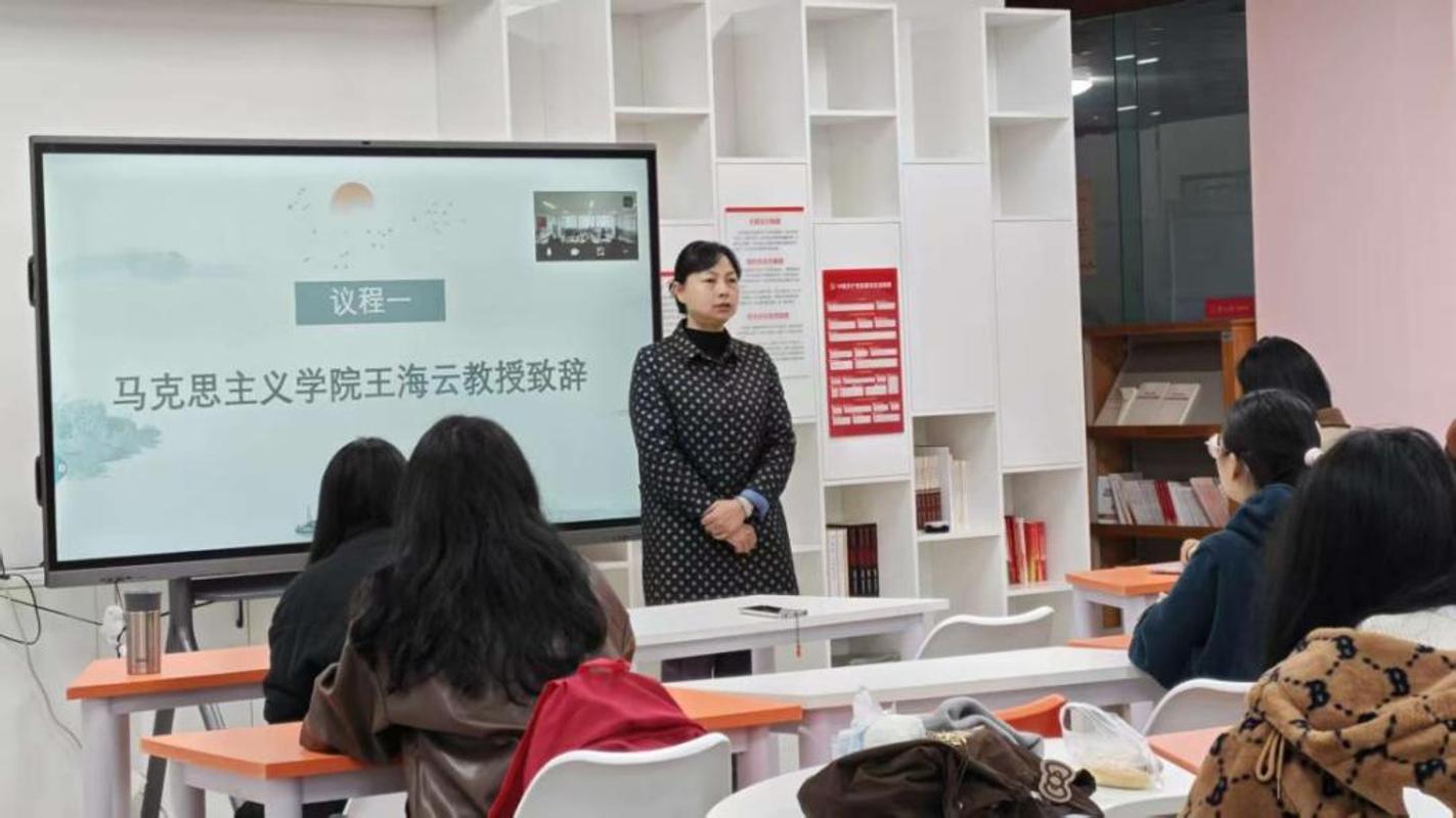 为推动马克思主义理论专业学科人才培养,营造青年学生研读经典的浓厚氛围,2025年11月3日,中国高等教育学会马克思主义研究分会2025年度“马克思主义经典著作研读”资助计划支持项目——昆明理工大学马克思主义学院“理育菁华”“‘唯物求是’马克思主义科学无神论”读书小组启动仪式在呈贡校区学生事务中心1305室召开。马克思主义学院王海云教授、纳雪沙副教授、卢英副教授、李雪松老师,以及两个读书小组全体成员、学校理论宣讲社成员参会,仪式由学院研究生余雅娴主持。