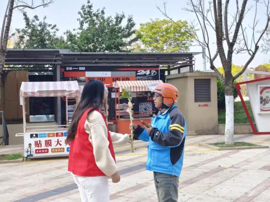 活动在社区七街区小广场正式拉开帷幕。马克思主义学院师生志愿者协助社区工作人员引导签到、分发物资、维护秩序,成为活动现场一道温暖的“志愿红”。在“活动点位介绍+启动仪式”环节,师生们认真聆听社区志愿服务常态化点位的分布情况,详细了解后续志愿服务项目的安排,为接下来深度参与社区治理做好充分准备。