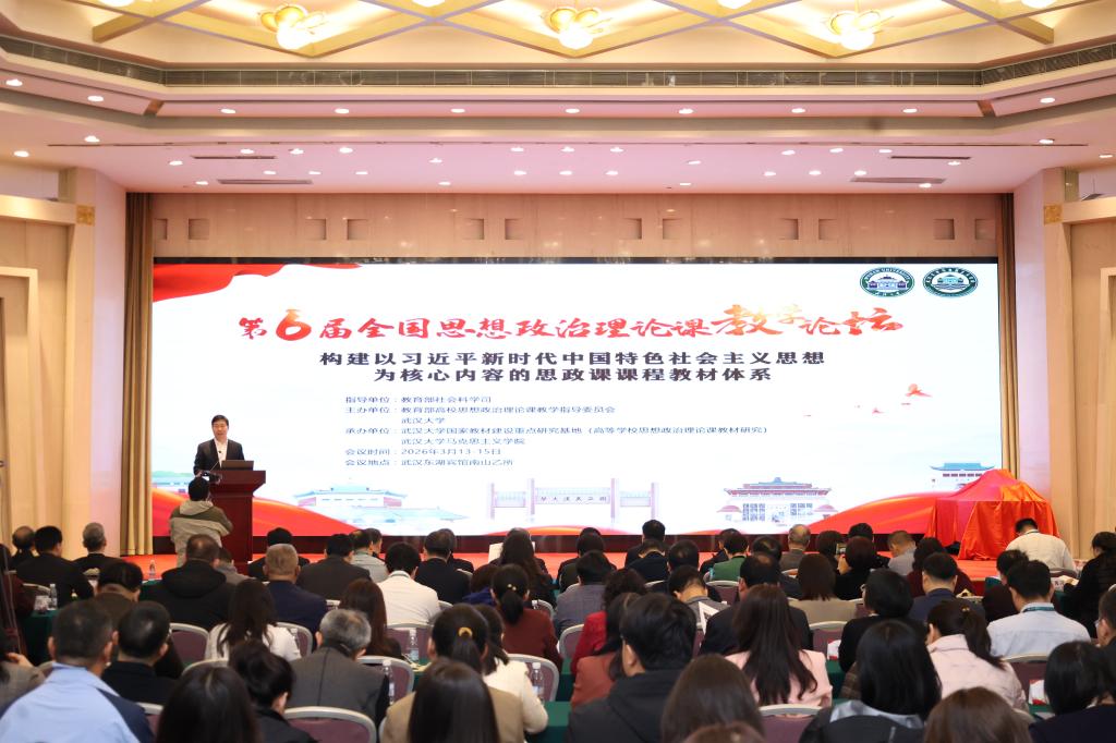 2026年3月14日,第六届全国思想政治理论课教学论坛在湖北省武汉市举办。本次会议由教育部社会科学司指导,教育部高等学校思想政治理论课教学指导委员会与武汉大学共同主办,武汉大学国家教材建设重点研究基地(高等学校思想政治理论课教材研究)与武汉大学马克思主义学院承办。学院主要领导、分管领导、教研中心及课程负责人等一行7人受邀参加会议。