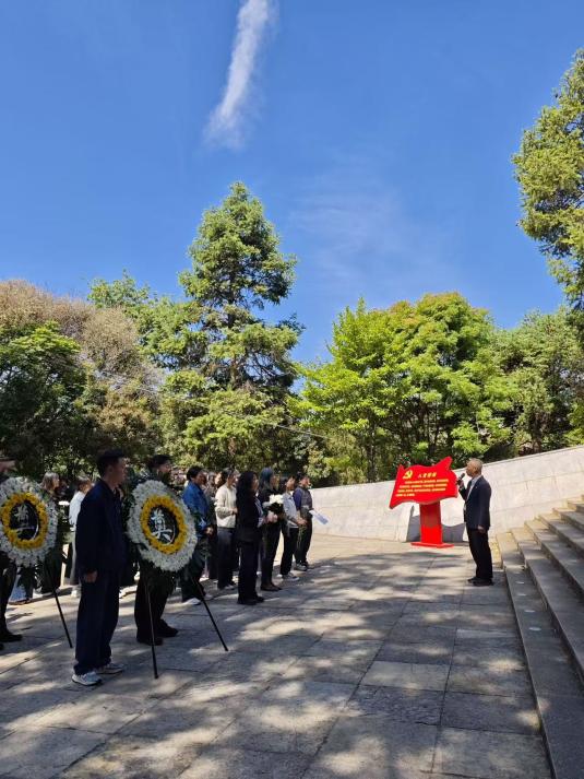 活动当天,参与人员身着素色正装,佩戴党员徽章,怀着崇敬之心齐聚烈士陵园。上午10时,祭扫仪式正式开始,全体人员列队肃立,向革命先烈敬献花篮圈,表达对先烈的深切缅怀与崇高敬意。昆明理工大学马克思主义学院党委书记殷国禹出席仪式并发言。