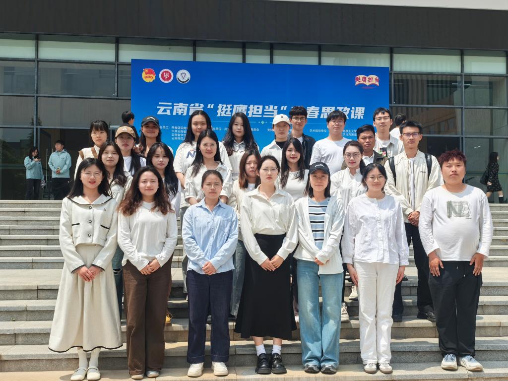 为深入学习贯彻习近平总书记关于加强和改进民族工作的重要思想,持续加强青年思想政治引领,引导青年学生铸牢中华民族共同体意识,2025年4月23日,昆明理工大学马克思主义学院选派25名团员青年代表,赴云南师范大学现场参加云南省“挺膺担当”青春思政课第四讲专题学习活动,以跨校研学的沉浸式实践,夯实马院青年理论根基、淬炼时代担当精神。
